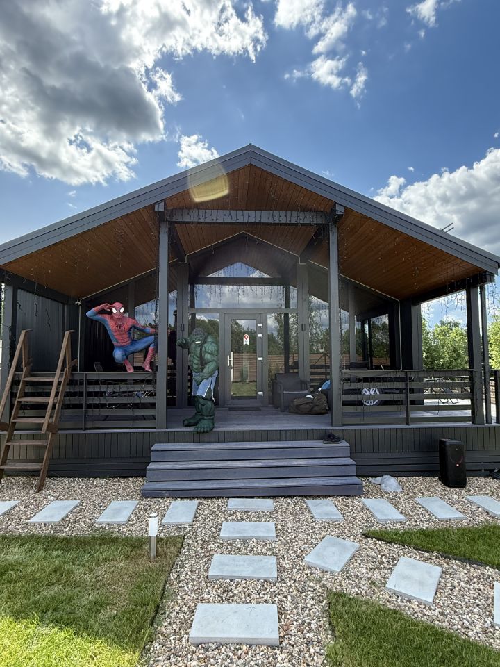 Приглашаем вас в наш новый дизайнерский эко-дом с панорамными окнами, где комфорт и стиль сочетаются с природной атмосферой. Дом площадью 128 м² (76 м² — сам дом с 2 спальнями, 27 м² — закрытая терраса, 25 м² — открытая терраса), идеально подходит для отдыха от городской суеты.