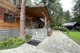 Благоустройство участка: на участке выполнен ландшафтный дизайн с множеством вековых сосен и декоративными кустарниками. Есть автоматический полив, освещаемые прогулочные дорожки..