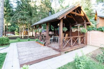 Дополнительные строения: деревянная крытая беседка-барбекю площадью 20 кв.м с открытой террасой и купольной печью-барбекю..