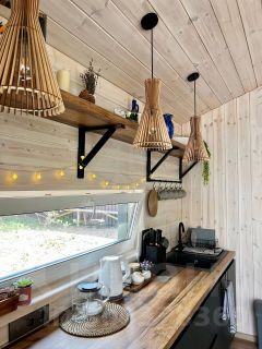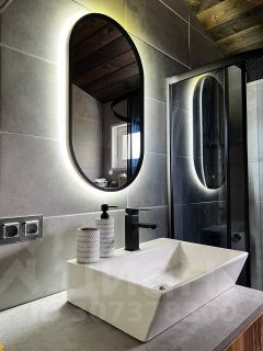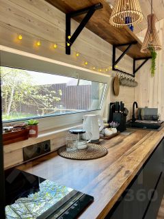 Кухня полностью оборудована: индукционная плита, микроволновая печь, набор кастрюль, сковородки, тарелки, салатники, кружки, бокалы, рюмки, столовые приборы, штопор,специи, масло, соль, кухонные полотенца, чай и кофе