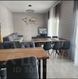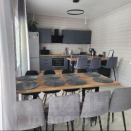 Кухня-гостинная с обеденной зоной, большим диваном, столом на 10 человек, телевизором и всем необходимым: