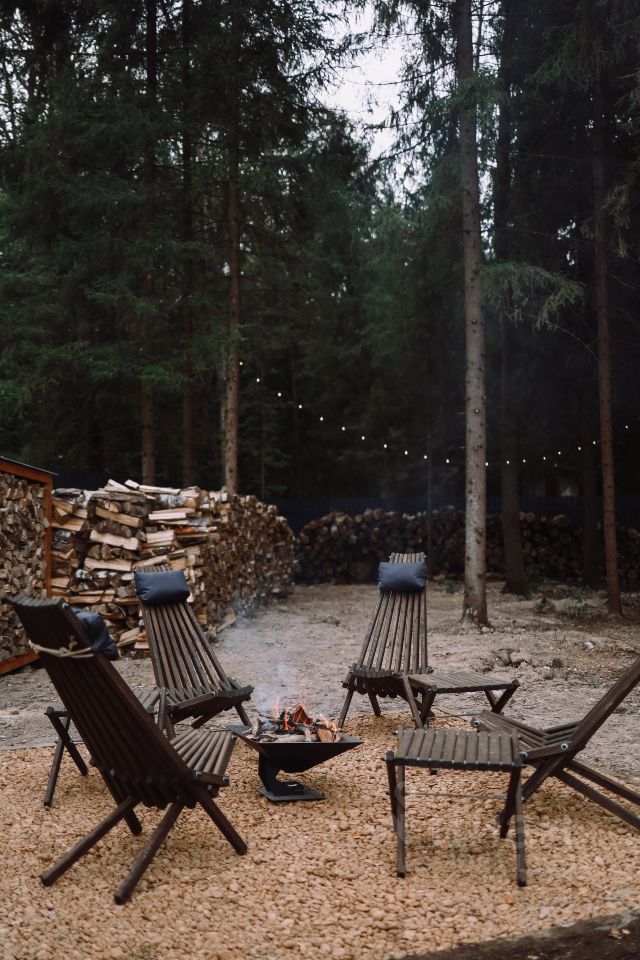 - барбекю зона на улице грилем и всеми приборами к нему, костровая чаша, удобные кресла, пледы.