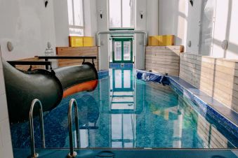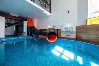 Релаксационные возможности лофта манхэттен: бассейн с водной горкой, дровяная баня, джакузи с гидромассажем и панорамным остеклением предлагают отличные возможности для разнообразного отдыха.