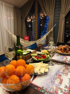 Дом рассчитан на комфортный отдых 8 человек: 3 изолированных спальни, просторная гостиная со вторым светом и панорамными окнами, полноценная кухня.