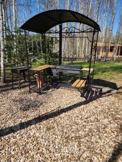 •беседка-мангал с крышей и скамьей