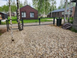 • огороженный участок с широкими воротами и отдельной калиткой,