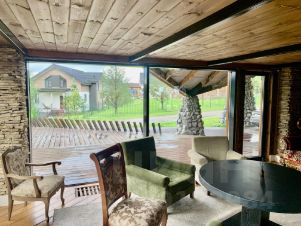 Красивый и просторный дом с ухоженной прилегающей территорией расположен на прилесном участке в 15 соток.