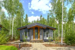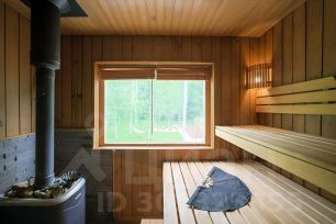 Загородный дом с баней в окружении леса и озер.