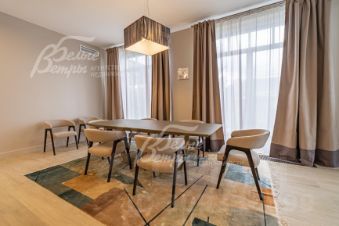 Мебель, оборудование: Дом полностью меблирован: кухня с глянцевыми фасадами (грецкий орех) со встроенной техникой "Bosch": духовой шкаф, варочная поверхность, посудомоечная машина, вытяжка, двухкамерный холодильник. Мебель BoConcept, Flou и другие известные бренды. Установлены все светильники. На окнах качественный дорогой текстиль. Вся сантехника установлена: туалеты, ванны, биде, раковины, душевые кабинки - все известных европейских брендов: Jacob Delafon, Laufen, Hansgrohe, Geberit, DornBracht, Vitra. Дом полностью готов к проживанию..