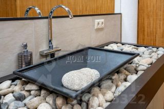 С/у выполнен в стиле скандинавского лофта, просторная душевая кабина с интересным дизайном.