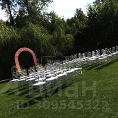 УЧАСТОК: 1 га. Ландшафтный дизайн. Посажен газон, множество деревьев и плодовых кустарников. На территории есть лавочки. Площадка для выездных регистраций. Облагороженные дорожки. Территория украшена различными декоративными сооружениями. Мангальная зона. Парковка. Русская баня на дровах.