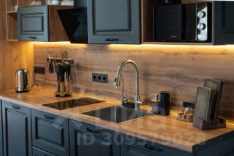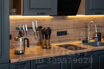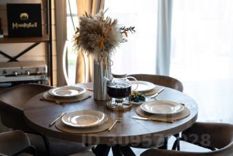 Уютная кухня-гостиная со всем необходимым инвентарем и посудой