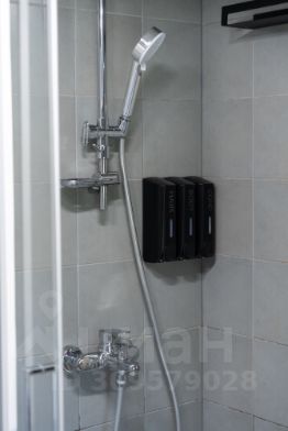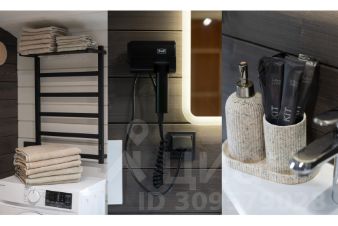 Ванная комната с душем и всем необходимым (фен, тапочки, полотенца, шампунь, гель для душа,ватные диски и палочки)