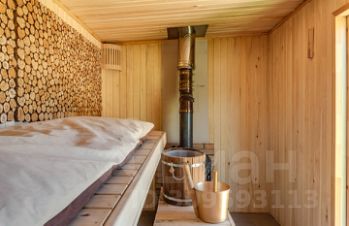 отдельностоящая русская баня с лежаками из трав и сена на дровах.