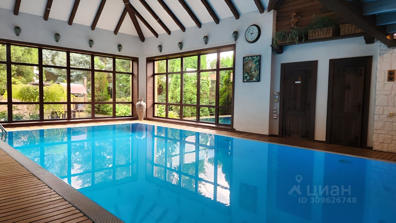 В доме: бассейн переливной, 10х5 метров. Дезинфекция производится активным кислородом (без хлора), температура воды и воздуха 26-28 градусов.