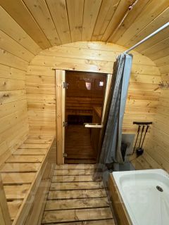 Прихожая, санузел с душевой, кладовая, кухня-гостиная, баня с теплой верандой и подогреваемым бассейном. Первый этаж, дополнительно к радиаторам с терморегуляторами, оснащён теплыми полами.