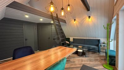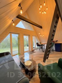 Предлагаем двухуровневый домик в стиле А-фрейм, с панорамным видом на закат, лес и пруд. Рядом протекает ручей. В доме установлена система умный дом с голосовым помощником Алисой. Есть русская баня с большим чаном. Территория асфальтирована, охраняется. Рядом — места для рыбалки и верховой езды. До станции Можайск — 15 минут.