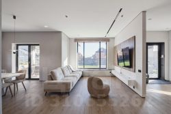 Совмещенная кухня-столовая-гостиная 43м2.