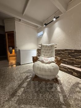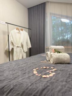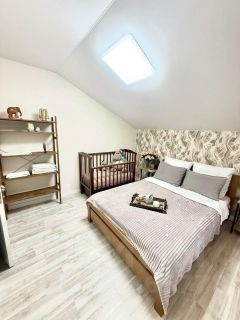 Четыре изолированные комнаты с двухспальными кроватями и шикарными видовыми карактеристиками. Сан. узел на каждом этаже. В гостинной: большой телевизор, камин, массажное кресло, синтезатор и большой комфортный диван. Кухня: посудомоечная машина, духовой шкаф, СВЧ, умная колонка Алиса, телевизор. В зоне сауны система караоке, проектор,камин, множество игр и книг.