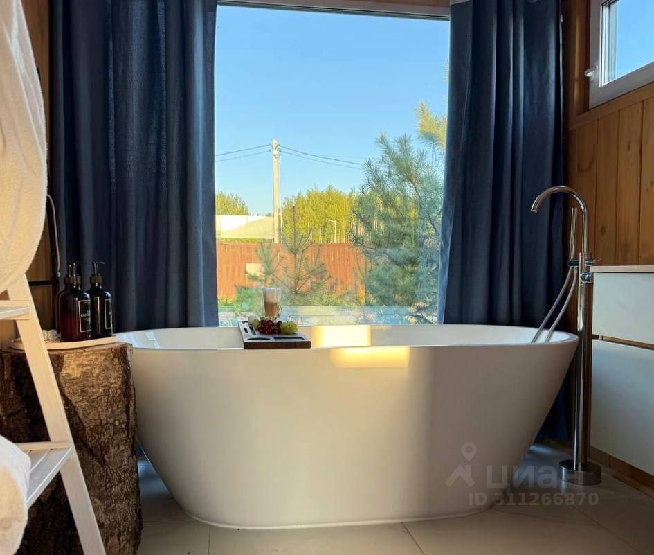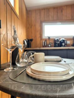 Внутри дом полностью оборудован для отличных выходных и незабываемого отдыха. Панорамные окна, звездное небо, отдельностоящая ванна у окна, с видом на сосны, чан и уютное место у костра. Внутри дома мы тоже все продумали: Красивые бокалы и посуда, менажницы и столики для сервировки любимых блюд, посудомойка, чайник, кофемашина с капсулами и велком-набор.