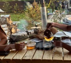 Идеально подойдет как для романтического свидания, так и для отдыха на природе, перезагрузки от шумной столицы! Выспаться, провести время в тишине у костра, попариться в баньке на дровах, насладиться чаном с еловыми ветками, попить кофе на террасе и полюбоваться природой - все это наш SPA - домик.