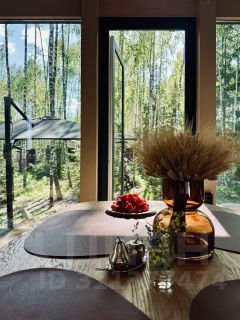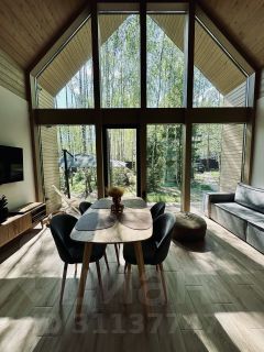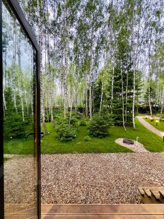 Новый панорамный барнхаус с сауной на лесном участке в охраняемом коттеджном поселке, примыкающем к Приокско-террасному заповеднику.