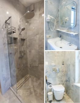 В санузлах установлены душевые системы с термостатом.