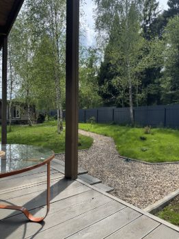 Сразу за участком начинается лес для прогулок с отличными дорожками.