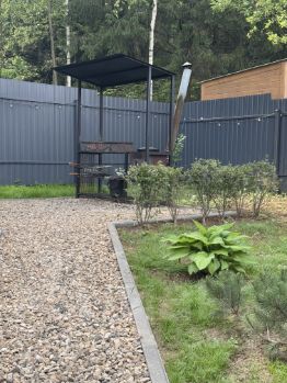 На участке мангальная зона с комплектом шампуров, решетки для гриля. Так же есть казан для любителей плова.