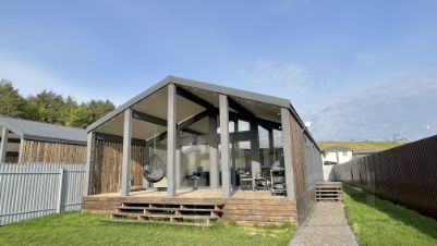 расположен на окраине тихого уютного СНТ, рядом детская площадка. Горнолыжный курорт в пешей доступности.