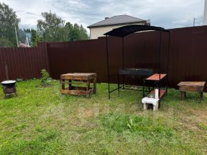 Во дворе мангал, казан, решетка, шампуры, стол для отдыха на природе.