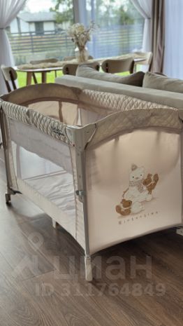 - Просторная кухня-гостиная, с раскладным диваном, обеденная зона, детский стульчик, кровать-манеж