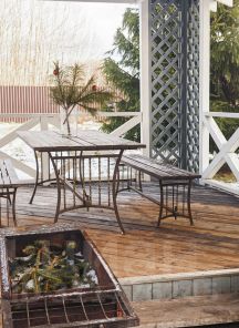 - Кухня с газовой печкой, микроволновкой, аэрогрилем и столом на 10 человек