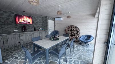 -Отдельностоящая беседка с панорамным остеклением и теплым полом. В ней есть все необходимое для проведения незабываемых посиделок на природе (включена в стоимость аренды);