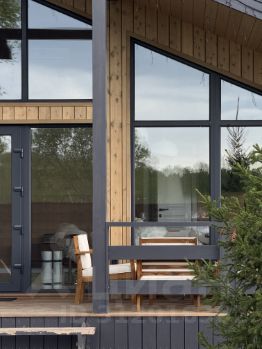 Современный коттедж с панорамными окнами, видом на лес и сауной в посёлке бизнес-класса Green Forest Premium.