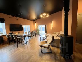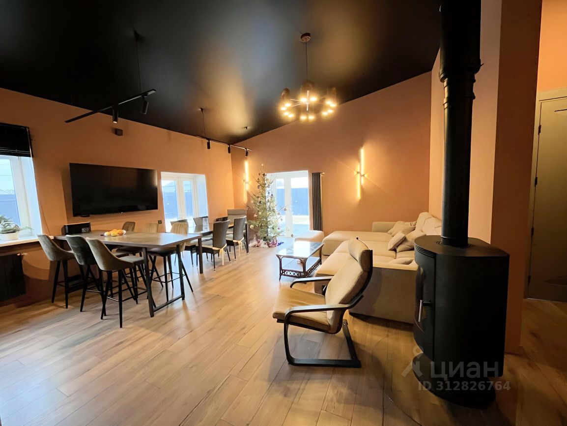 большая кухня-гостиная с печью-камином, потолки 4,5 м,