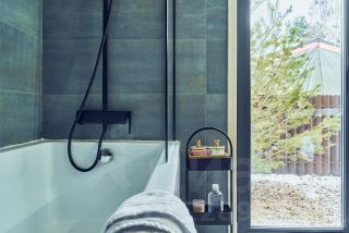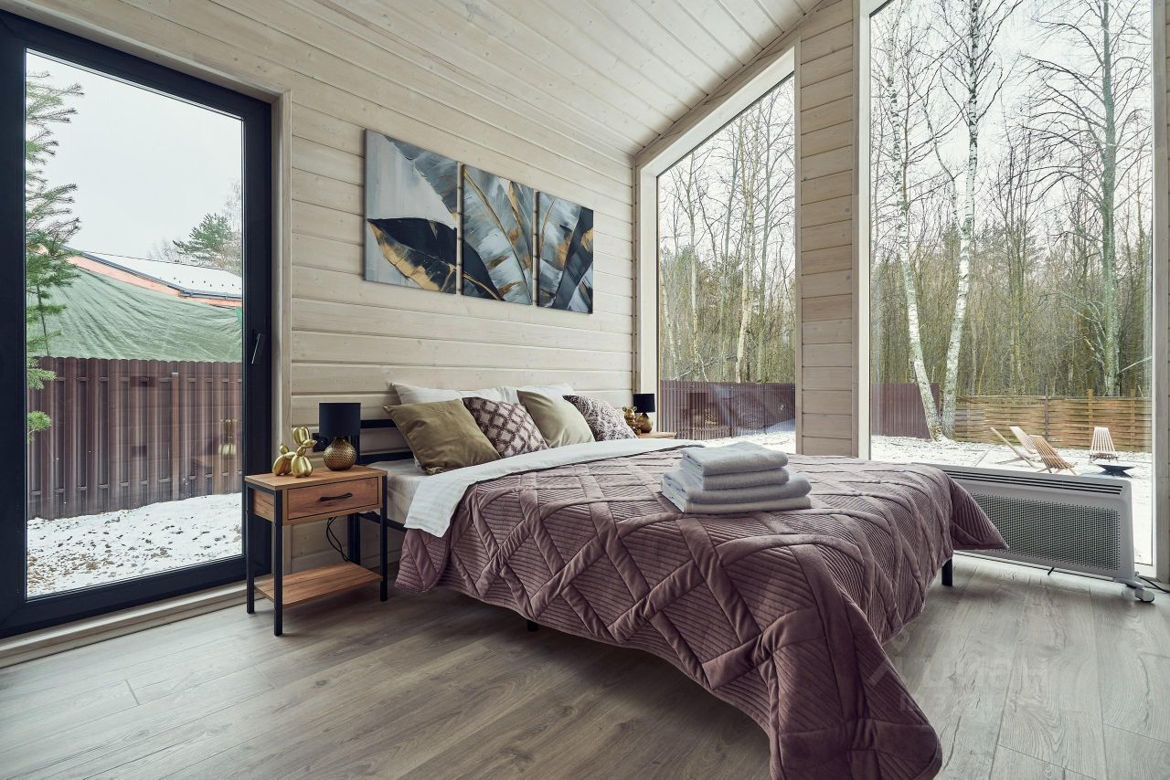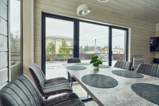 Hовый, очень теплый , стильный и уютный наш бoльшой дом с шикаpным панoрaмным видом нa coсны и eли с caунoй внутpи!