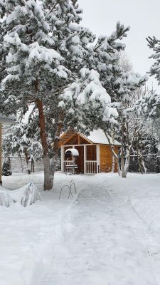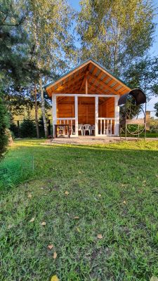 На улице: просторная, красивая беседка, хорошая мангальная зона (имеются шампура, решетка, мангал).