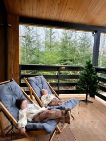 • Сауна с панорамным видом на лес и огромный чан на 6 человек, где можно полностью перегрузиться и окунуться в атмосферу отдыха