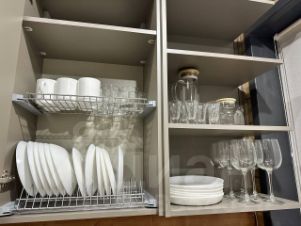 • Полностью оборудованная кухня: все необходимое для приготовления любимых блюд (плита, духовка, холодильник, микроволновка, посудомоечная машина, посуда).