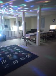 Банкетный зал 60 кв. м., большой стол на 25 персоны. В гостиной ЖК-ТВ с цифровой приставкой на 199 каналов, и спутниковой антенной, музыкальное сопровождение: усилитель (150 Вт) колонка с Сабвуфером, с AUX, USB входами, микрофон, профессиональное караоке, цветомузыка, большой диван от 2 до 4 спальных мест при желании, печь камин действующий. Имеется танцпол. 2 санузла с душевыми.