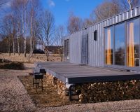 На территории — открытая терраса 36 м² с видом на воду и сосны. Здесь можно завтракать, отдыхать или жарить шашлык — в любую погоду.