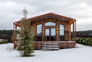 Уютный дом с панорамными окнами, двумя спальнями и террасой!