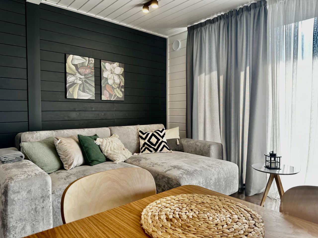 2 изолированные спальни, кухня-гостиная, сауна, ванная комната с душевой кабиной.
