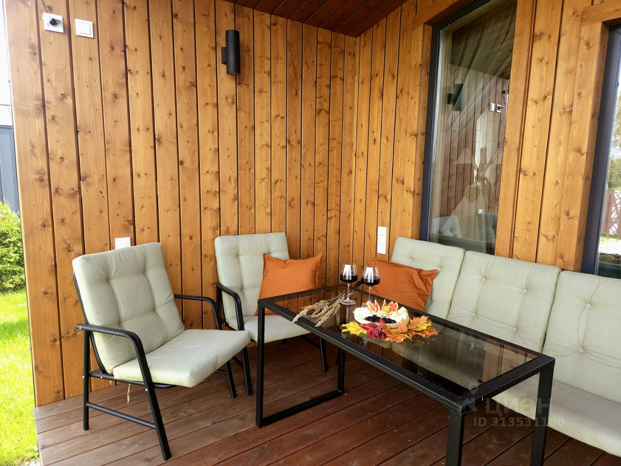 Мебель на террасе (стол, лавочка и удобные кресла)