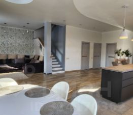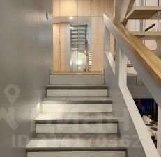 На первом этаже огромная гостиная совмещенная с кухней, постирочная, гардеробная, 2 санузла, 2 спальни, зона хранения.