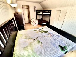 На 1 этаже гостиная кухня (35 кв.м.), две спальни (20 и 9 кв.м.), просторный коридор, ванная комната, хозяйственная комната, бойлерная. На 2 этаже спальня 18 м. Все кровати размером 180х200, круглая кровать 225. Для маленьких детей можно установить манеж-кровать.