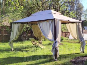На улице - диваны, пластиковая мебель, качели, гамак, мангальная зона, беседка - шатер 3х4 м.