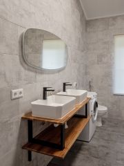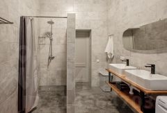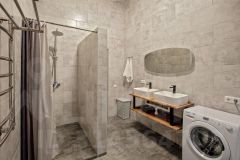 Оборудованная кухня с индукционной плитой и духовкой, холодильником, посудомоечной машиной, микроволновкой и посудой. В доме полы с подогревом. Имеется стоянка для машин.