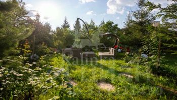 На участке расположены: баня, гараж и навес на 3 авто; квартира для персонала (75 кв.м).